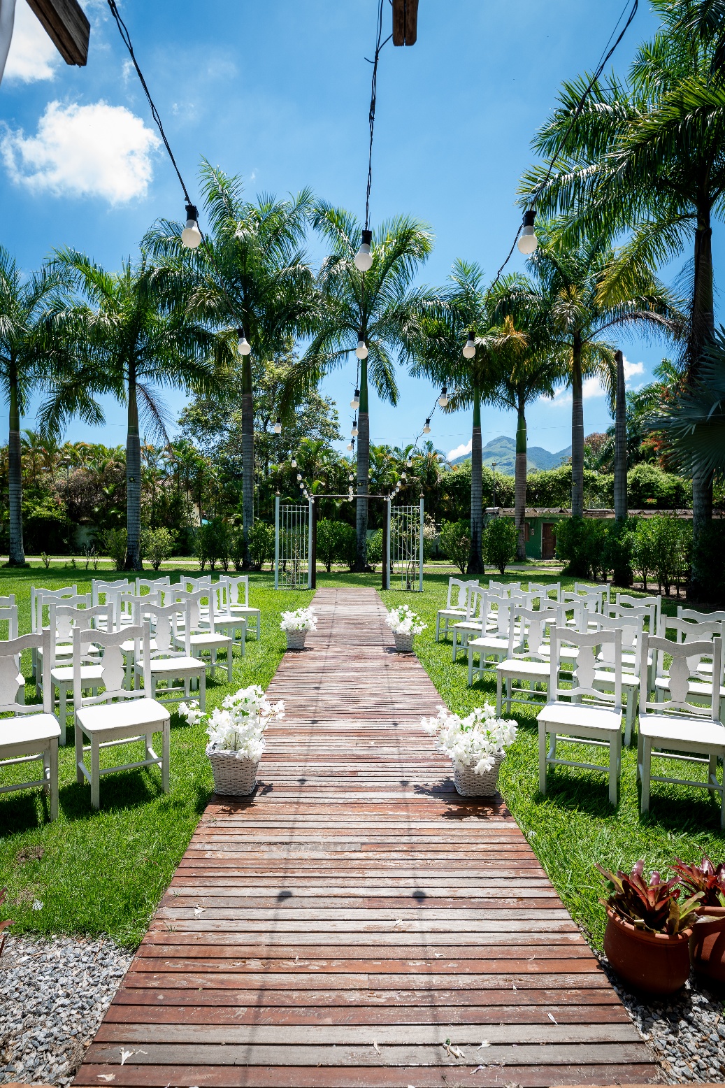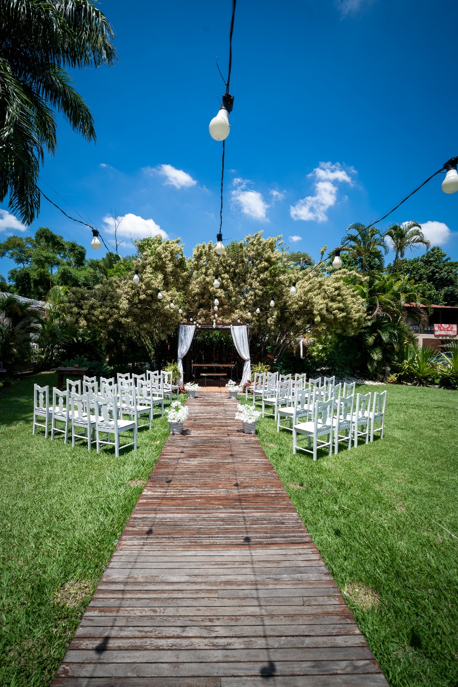 Nosso espaço foi planejado para unir o simples com sofisticado, contamos com 3 espaços sendo 02 áreas para cerimonia (ar livre e coberta) e 01 área para recepção dos seus convidados. Cada ambiente pode ser reservado separadamente ou juntos, mas se você fechar os dois juntos.